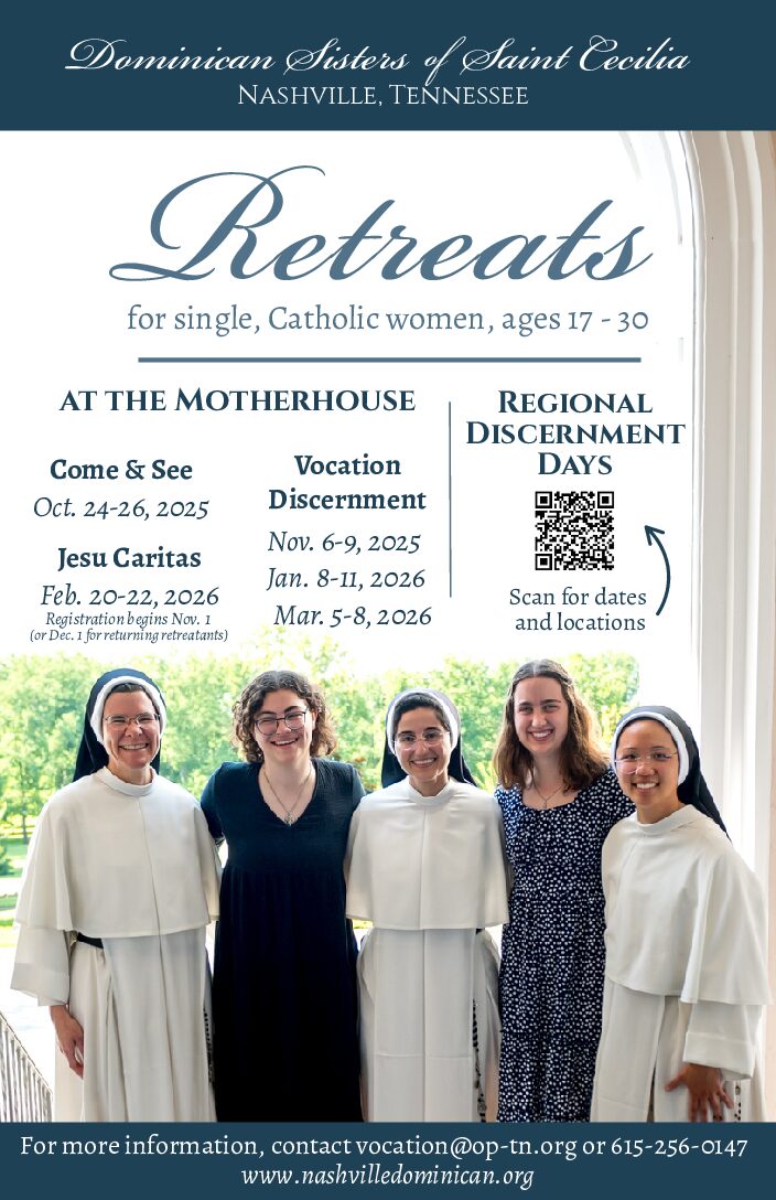 Dominican Sisters of St. Cecilia Retreat January 8, 2026 - January 11, 2026 801 Dominican DriveNashville, TN Nashville, TN 37228 Details